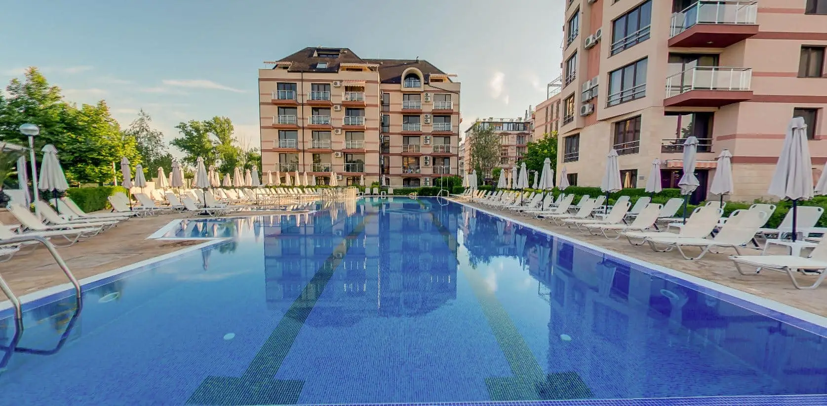 Тарсис е комплекс с басейн в Слънчев бряг. За гостите има 2 външни басейна с интегрирана детска секция.